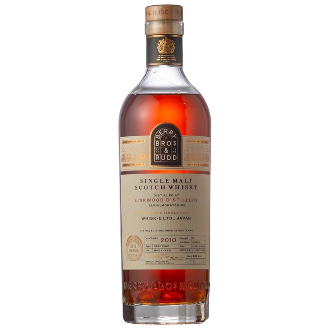 リンクウッド2010はペドロヒメネス(PX)シェリーホグスヘッドで4年追熟した15年熟成で、シングルカスクのカスクストレングスボトリングです。リンクウッドの華やかな酒質とPXシェリー樽由来の濃厚な個性が見事に調和した1本。